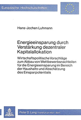 Energieeinsparung durch Verstärkung dezentraler Kapitalallokation: Wirtschaftspolitische Vorschläge zum Abbau von Wettbewerbsnachteilen für die ... / Publications Universitaires Européennes) PDF Download